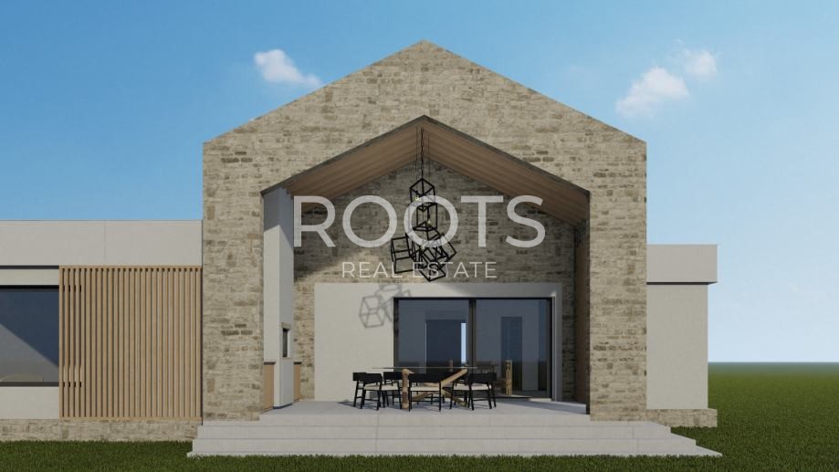 Građevinsko zemljište 6800 m2 se parcelira na 7 zemljišta s građevinskim dozvolama, za gradnju 7 kuća s bazenom, svaka po 158 m2 neto površine.