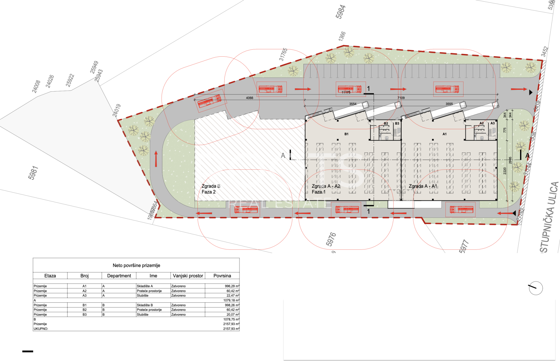 Zagrebačka županija, Stupnik, Gornjostupnička ulica, projekt hale sa uredima u početnoj fazi izgradnje odmah uz glavnu prometnicu na zemljištu površine cca 9.000 m2.