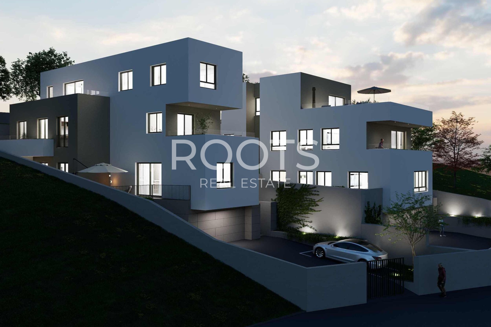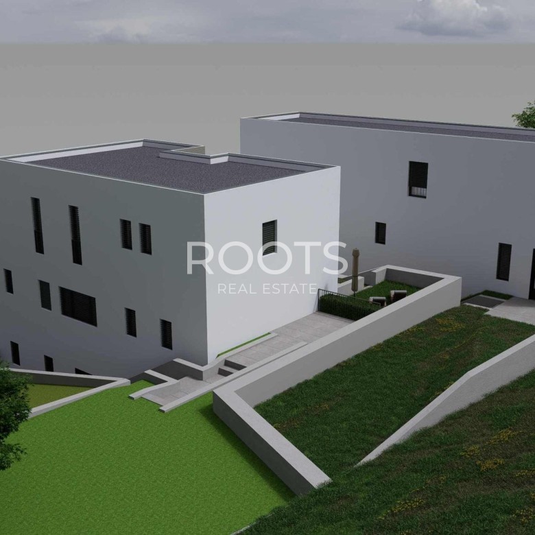 Zemljište se sastoji od 3 zasebna građevinska zemljišta, dva sa građevinskom dozvolom sa dva objekta sa ukupno 5 stanova, urbana pravila 2.2: