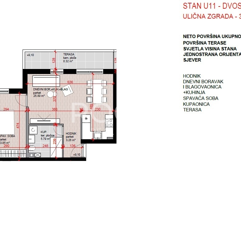 STAN U-11, dvosoban na 3. katu, ukupno 53 m2 neto prodajne površine.