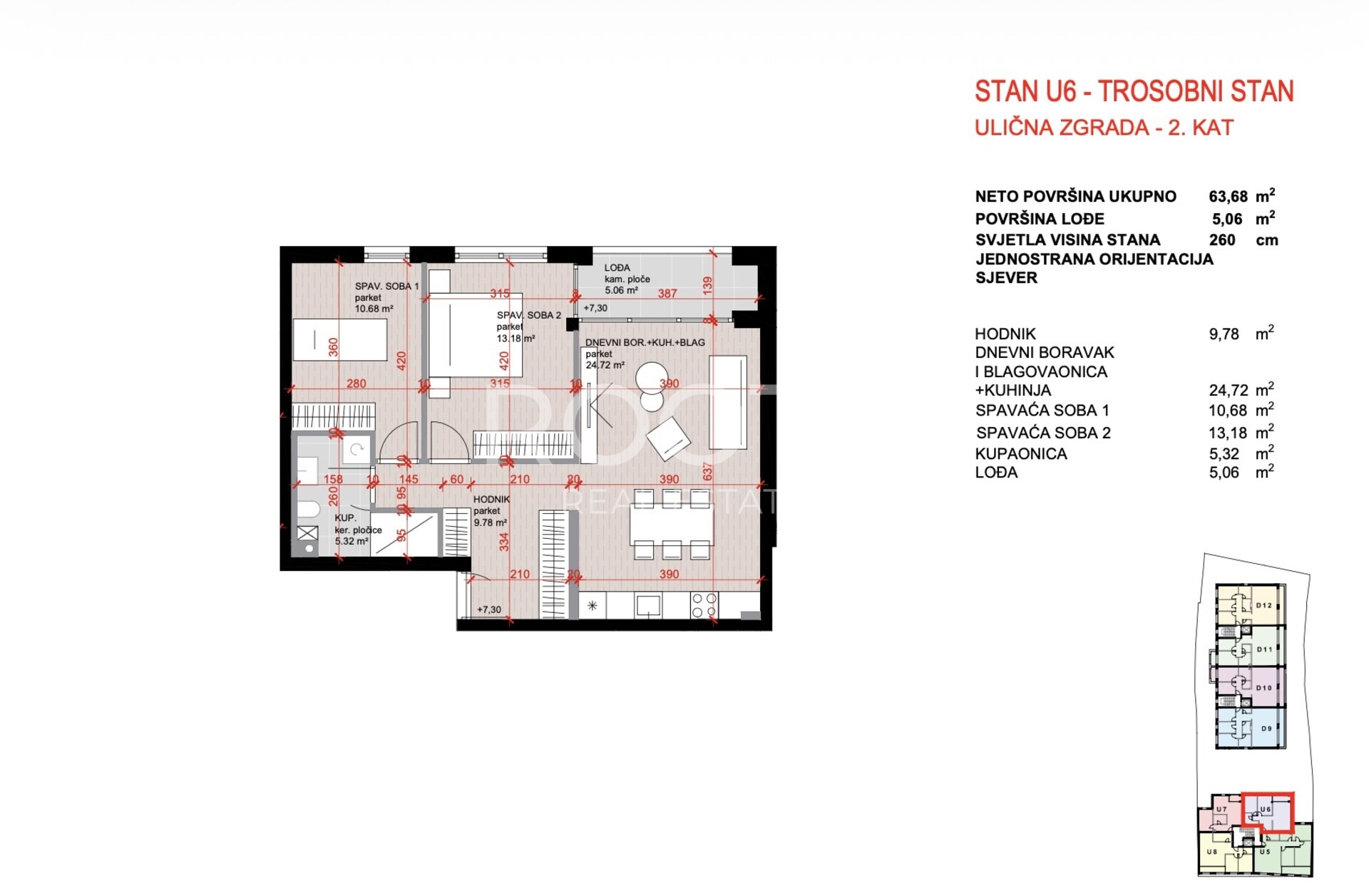 STAN U-6, trosoban na 2. katu, ukupno 72,5 m2 neto prodajne površine.