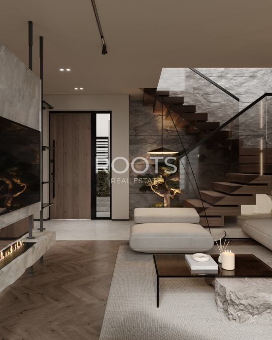 izolacija temelja, podruma i garaža (Xypex, vodonepropusni beton), vrhunski aluminijski prozori, OTIIMA & Schüco, ventilirana fasada po cijeloj kući, stropni sustav za hlađenje, najnovija generacija sustava za hlađenje, rješenje pametne kuće, imitacija prirodnog kamena na zidovima, visina stropa 310 cm, omekšivač filtera za vodu, sustav podnog grijanja i dizalica topline, kuća je projektirana za dobivanje A+ energetskog certifikata.