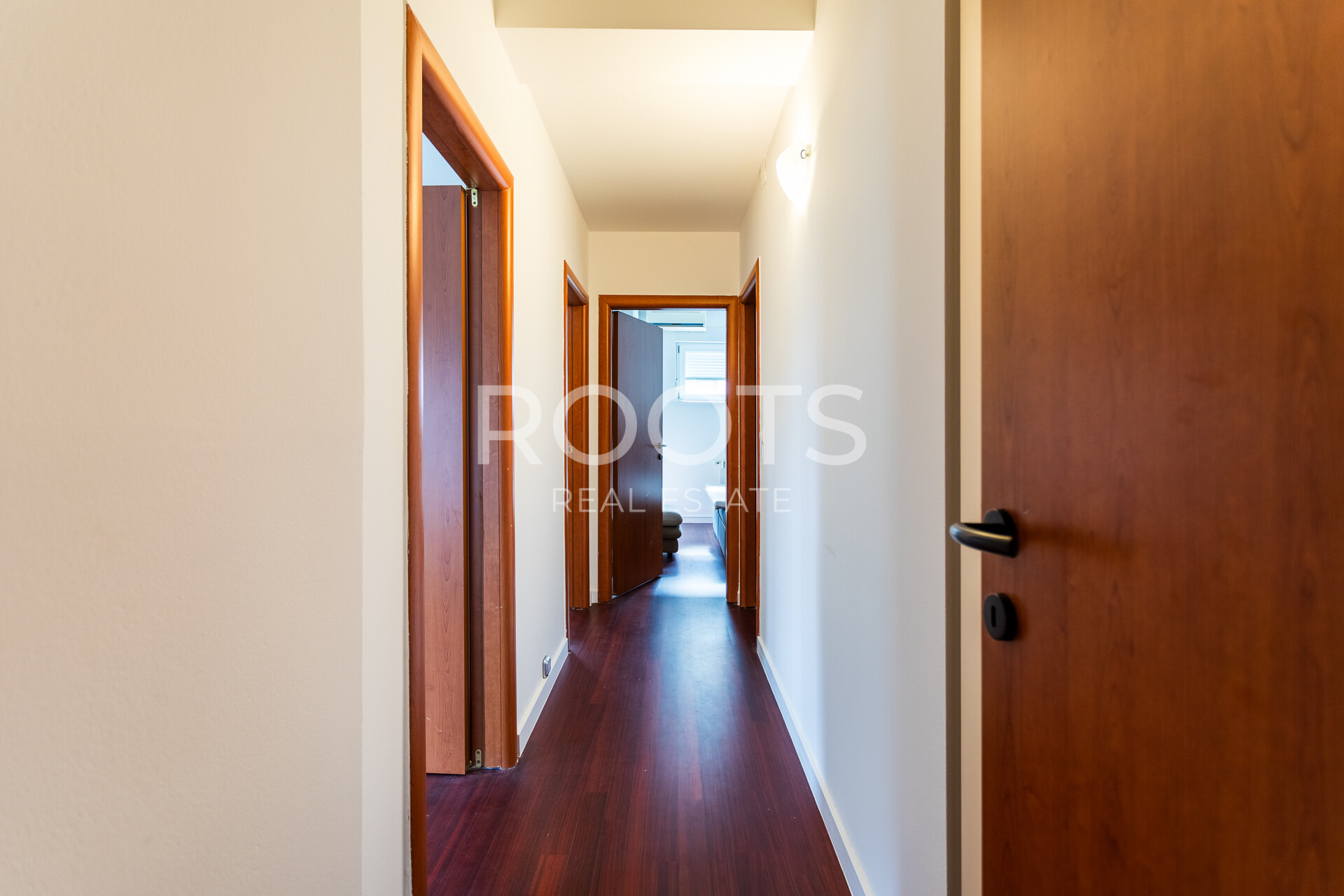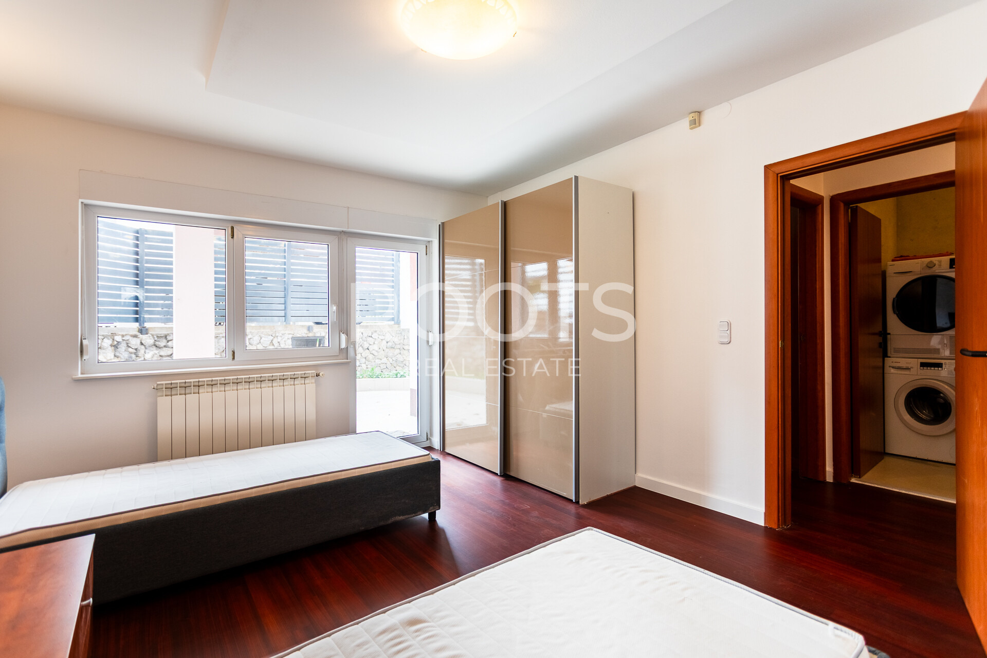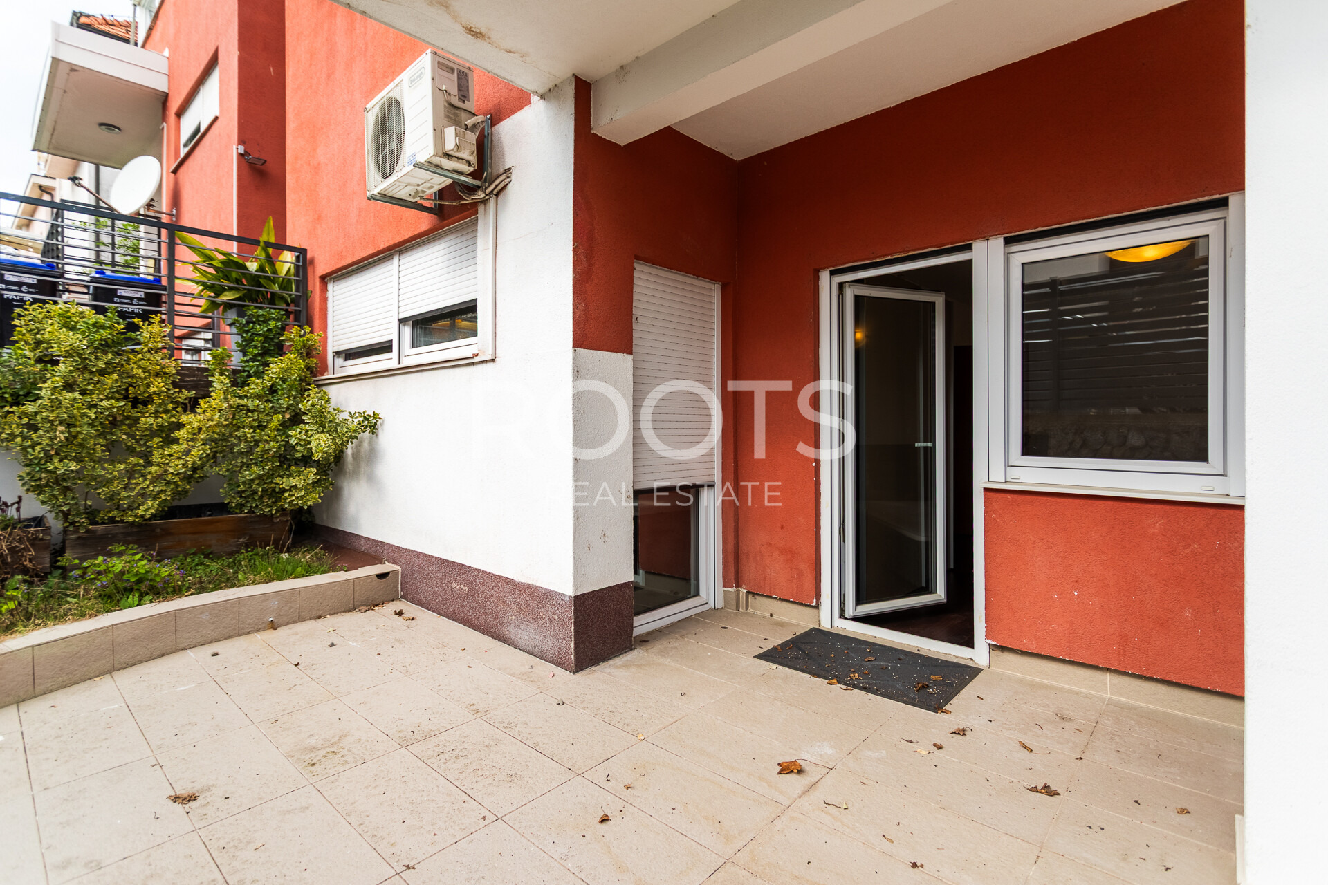 Stan se sastoji od ulaznog prostora, prostranog dnevnog boravka s blagovaonicom i kuhinjom otvorenog koncepta te velike natkrivene terase. U privatnom dijelu stana nalaze se tri komforne spavaće sobe s izlazom na mali vrt/terasu te nova kupaonica. Stan je kompletno adaptiran ove godine.