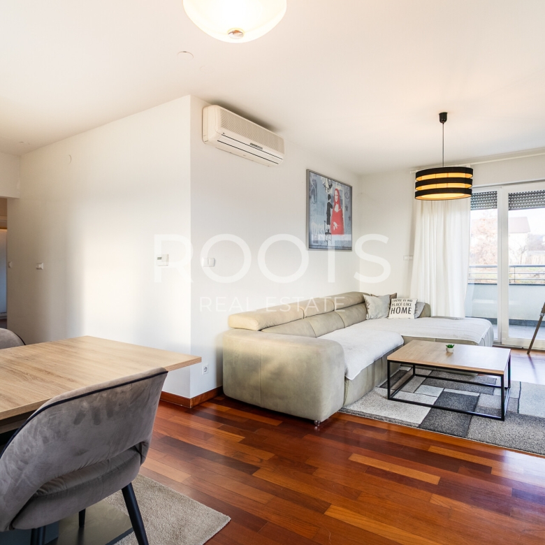 Prostor je funkcionalno i logično raspoređen te se sastoji od: ulaznog hodnika, prostranog dnevnog boravka s blagovaonicom, kuhinje, dvije spavaće sobe, kupaonice s podnim grijanjem, zasebnog WC-a te dvije velike terase orijentirane prema jugu, uz dodatnu istočnu i zapadnu orijentaciju koja osigurava obilje prirodnog svjetla tijekom cijelog dana.
