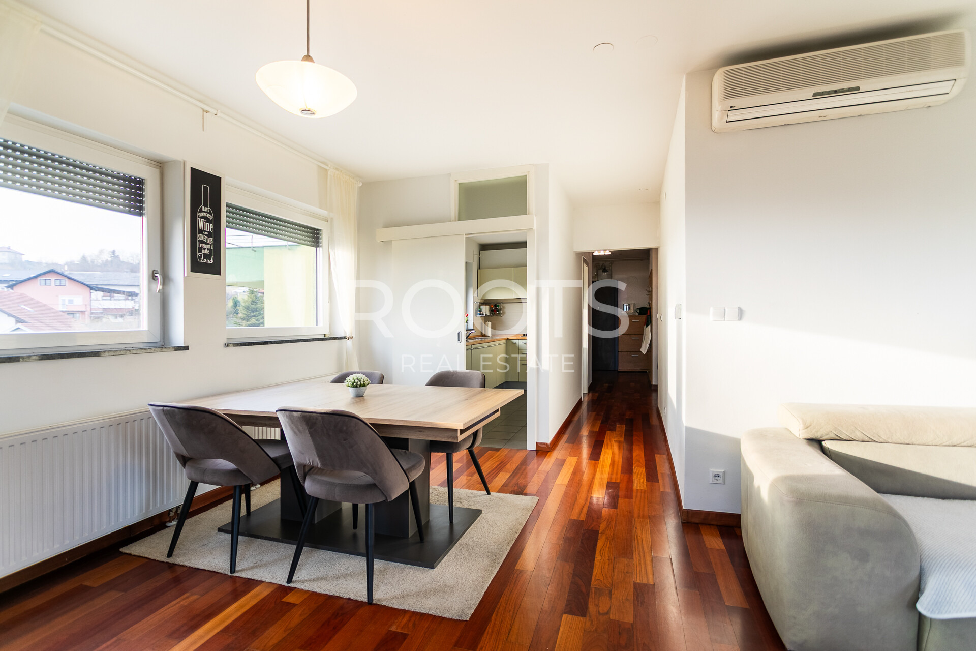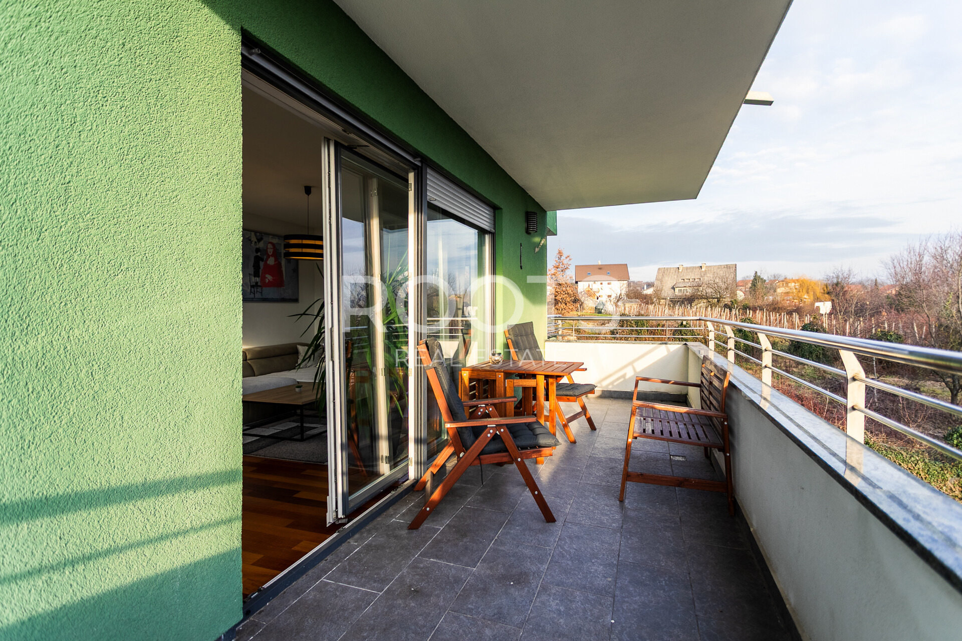 Stan se nalazi u mirnom, zelenilom okruženom dijelu Podsuseda, uz otvoreni pogled na zaštićeni zeleni pojas bez mogućnosti buduće gradnje, što osigurava dugoročnu privatnost i neometan pogled.